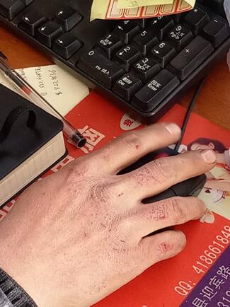 總工程師崔明思凍裂的手