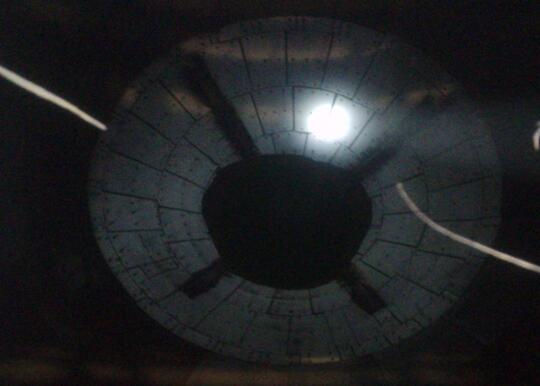 未安裝疏松機的粉倉(倉壁板結(jié)大量鐵粉)